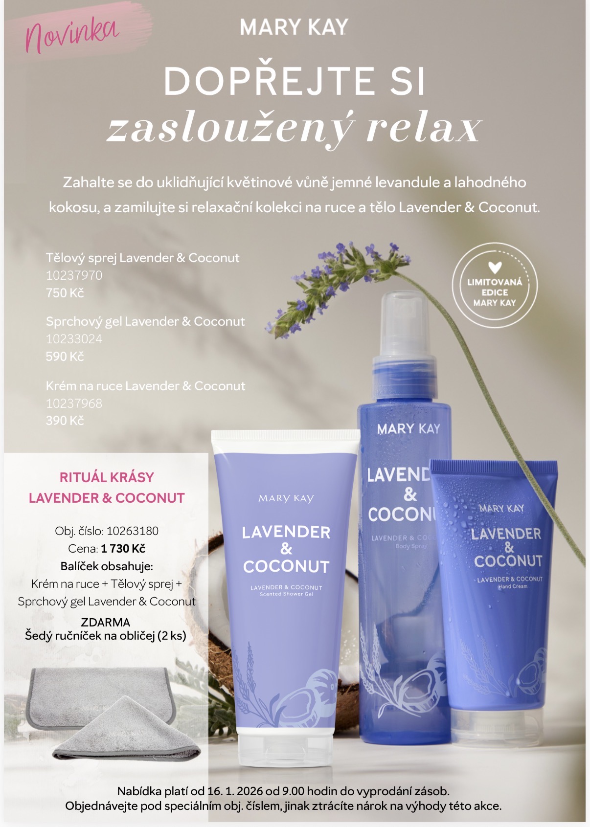 Tento balíček je ideální pro ženy, které jsou dlouhodobě v napětí, hodně dávají ostatním a samy sebe odsouvají na poslední místo. Levandule s kokosem vytváří jemnou, uklidňující vůni, která z obyčejné sprchy dělá malý večerní rituál.