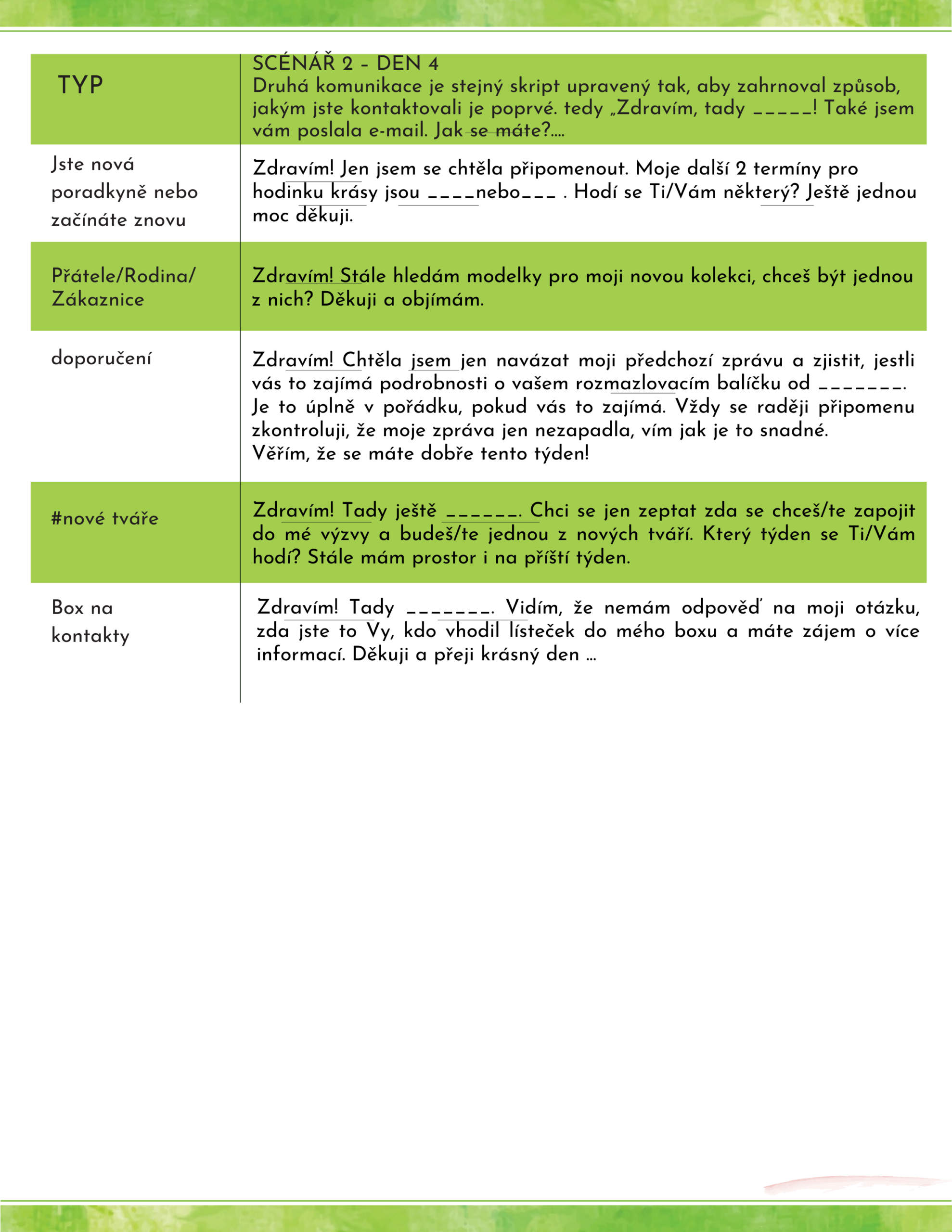Ať už začínáte, vracíte se po pauze nebo chcete svůj byznys posunout dál, tento systém vám pomůže získat větší jistotu v komunikaci, více domluvených schůzek a přirozený rytmus aktivit, který vás bude dlouhodobě podporovat.